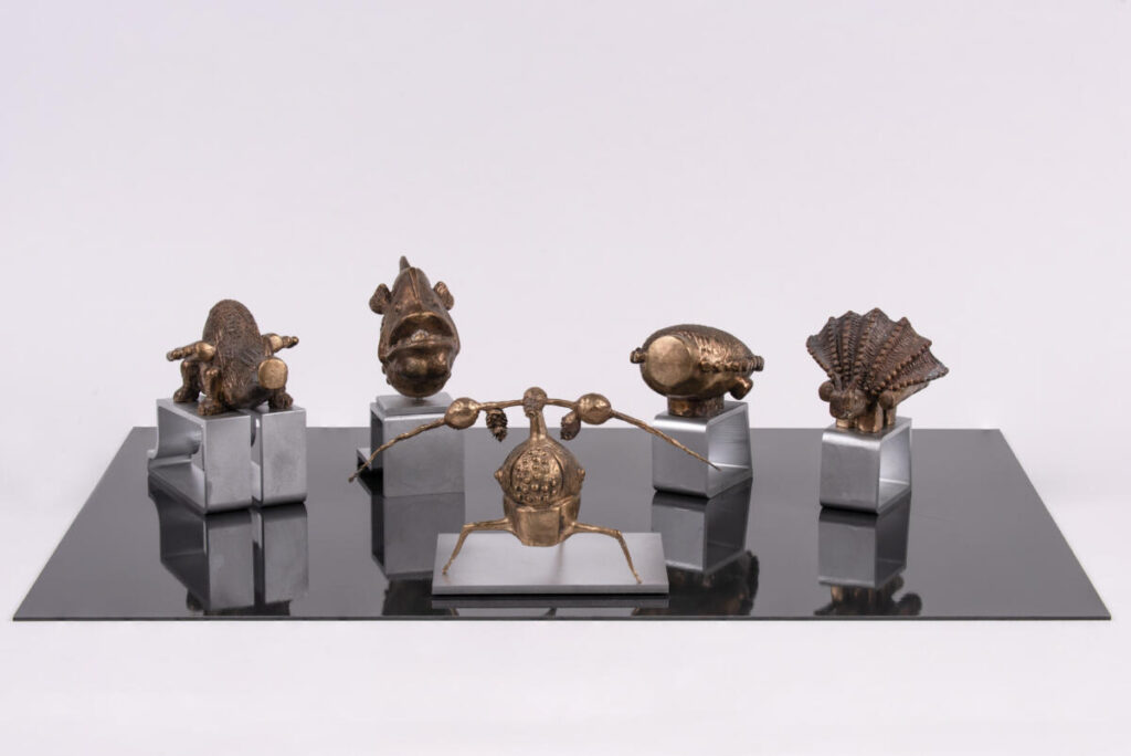 Der Bildhauer Frank Schauseil zeigt in der kleinen Galerie in Döbeln Plastiken in Bronze, Alu und Holz. Bei seiner Formenfindung geht der Bildhauer von menschlichen, tierischen, pflanzlichen seinen Figuren künstlerisch weiterentwickelt. Auf diese Weise entstehen Mischwesen, deren gegensätzliche Eigenschaften in ihre Gesamtwirkung einfließen. So können menschliche Körper versehrt, animalische oder auch technische Wesen beseelt wirken. Darin ergeben sie plastische Bilder für menschliche Daseinszustände.